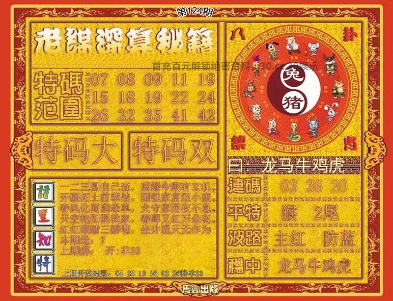 | 116期:绝杀①肖【龙龙】特开马24准 |