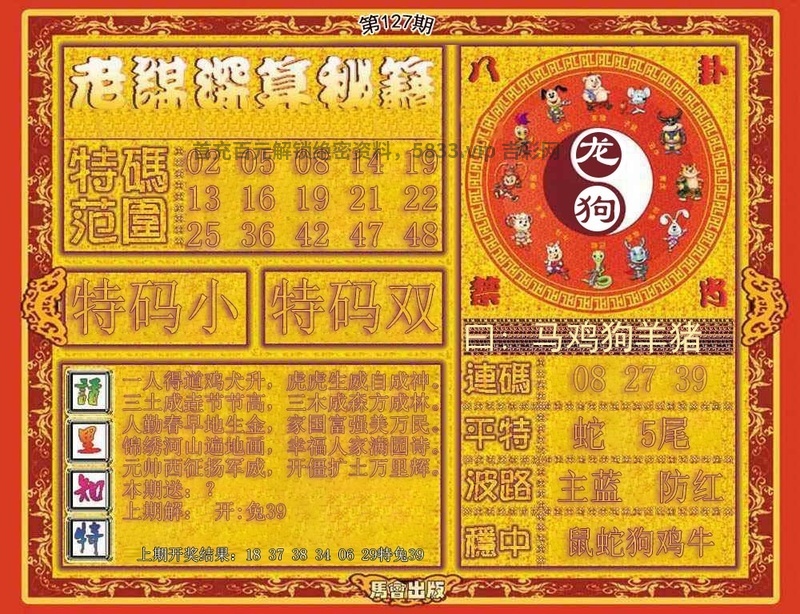 | 127期:家野两肖🍄野兽+狗鸡🍄开蛇25准 |